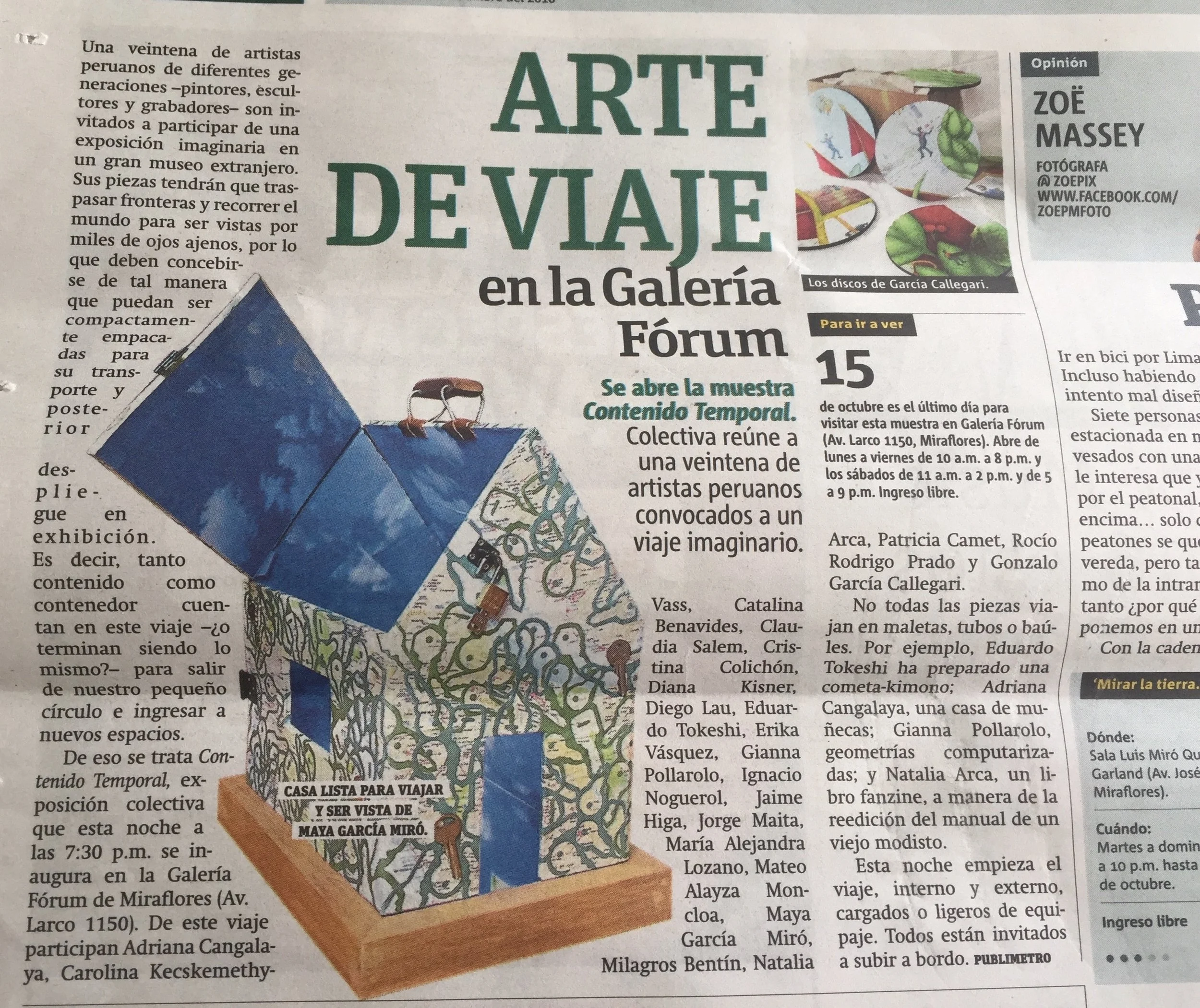 Articulo sobre la exposición en Publimetro- 3 de Marzo del 2016